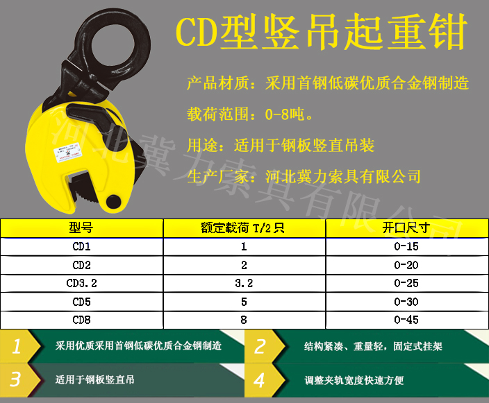 產(chǎn)品分類 鋼板起重鉗使用 鋼板起重鉗您現(xiàn)在的位置:首頁 > 產(chǎn)品介紹 > 鋼板起重鉗 > CD型豎吊鋼板起重鉗![]() 相關新聞