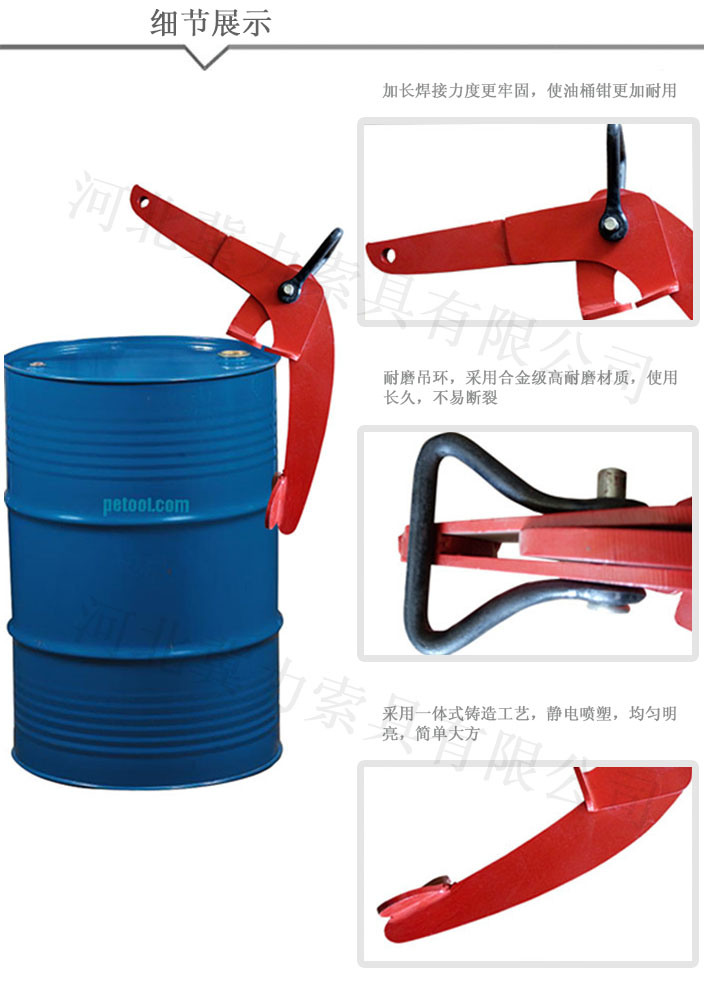 油桶鉗自重輕,結(jié)構(gòu)簡單,使用方便,此類產(chǎn)品采用“低碳###合金鋼”鍛造而成,###了此類工具的抗沖擊能力,承載能力,韌性,和延伸率,大大提高此類產(chǎn)品的安全性能與壽命。