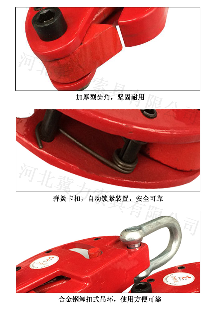 油桶鉗一種起重用吊具,用于裝卸立放圓桶。由鉗體、鉗舌、鉗舌桿、彈簧等組成,成對使用。操作時將圓桶鉗按入圓桶凸緣,當鉗舌低于桶端凸緣時,彈簧力使鉗舌頂住凸緣自行鎖緊,即可起吊。拆卸時,按動鉗舌桿,使鉗舌脫離油桶凸緣即可。它還可將臥放圓桶豎直吊起。