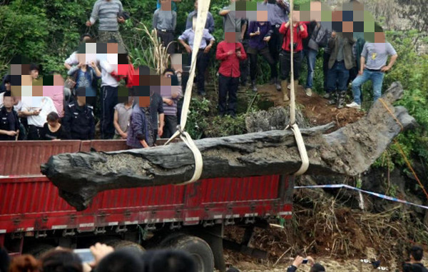 四川某地一河道內(nèi)發(fā)現(xiàn)一棵千年烏木,這可烏木直徑較大十分少見。相關(guān)部分將其使用吊窗機(jī)將其吊運(yùn)到卡車內(nèi)送往博物館。烏木又稱之為東方神木,是寶貴自然資源。