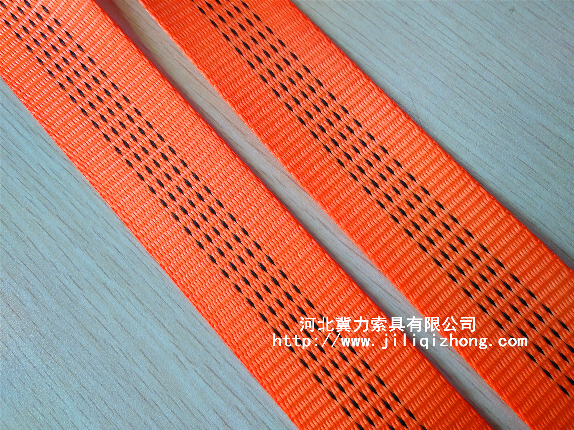 關于成品吊裝帶的半成品織帶規(guī)格型號。我們可以從它的寬度、材質來進行區(qū)分。織帶常規(guī)的寬度有25MM、30MM、50MM、75MM、100MM、125MM和150MM等。寬可達300MM,窄可達20MM。材質可分為聚酯和聚丙烯兩種也是我們常說的丙綸個滌綸。成品滌綸織帶可進行上色,常規(guī)顏色有紫色、綠色、黃色、灰色、紅色、褐色、藍色、橙色、黑色等國標吊裝帶顏色。合成纖維吊裝帶織帶的破斷拉力從2噸到20噸均可生產(chǎn)。